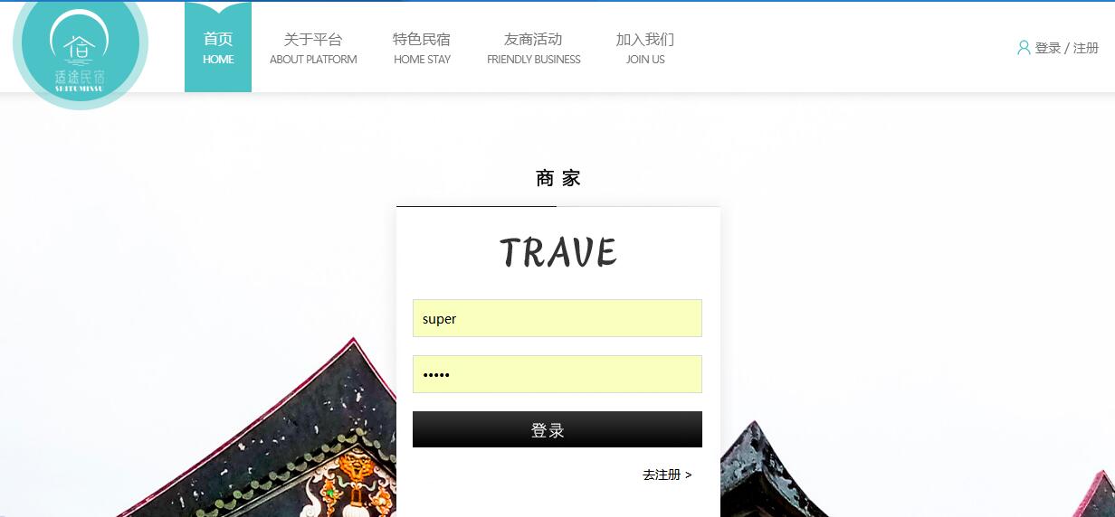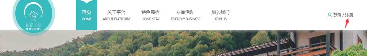 1、進入適途民宿平臺:www.www.yumiban.cn,點擊右上角的注冊按鈕。