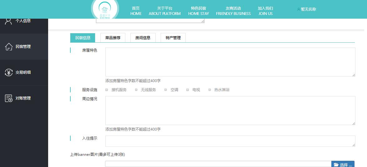1、填寫民宿特色、介紹、展示圖等內容 (*banner圖指店鋪頁面最上部的展示圖,三張大圖)